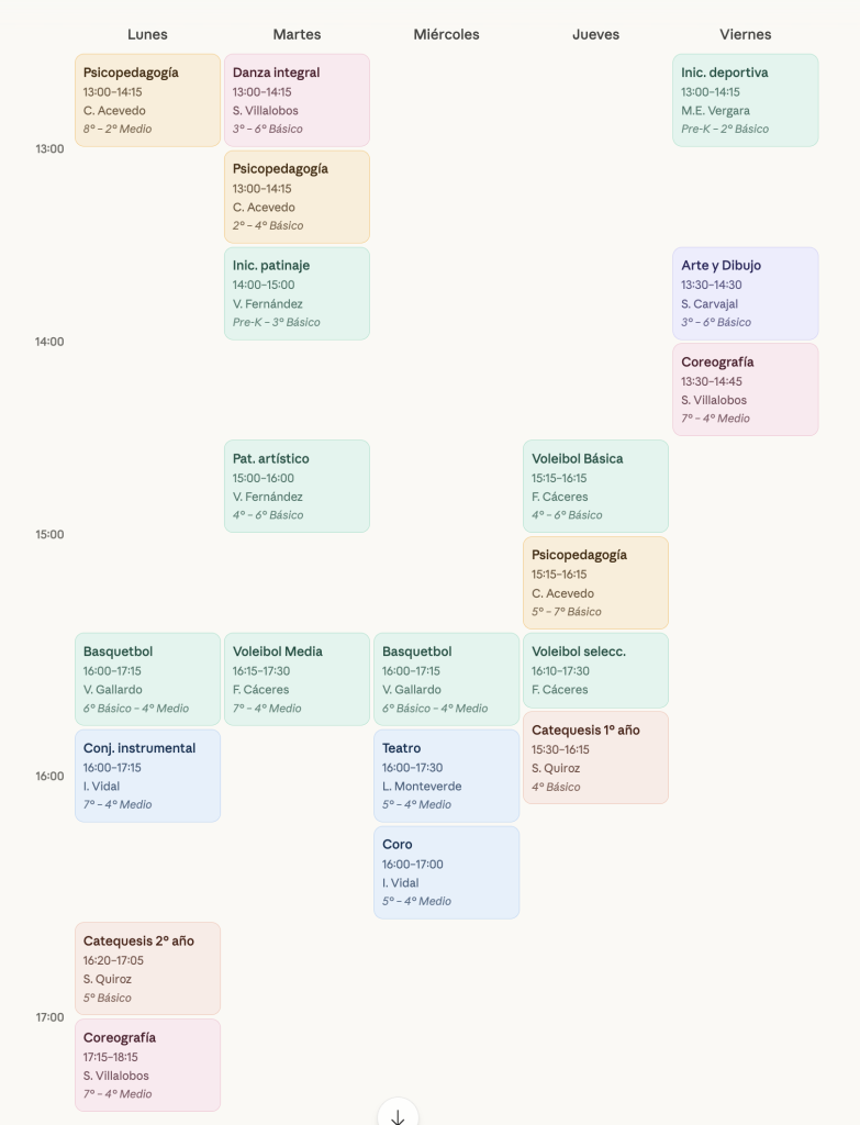 A continuación, hacemos llegar a ustedes la oferta de talleres que la Dirección del Colegio pone a disposición de sus estudiantes este año 2026.
